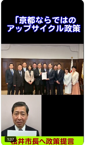 2/19松井市長に提言した政策「京都ならではのアップサイクル政策に関する調査研究――アップサイクルで創造する心豊かなライフスタイル」を2分でまとめたショート動画です。