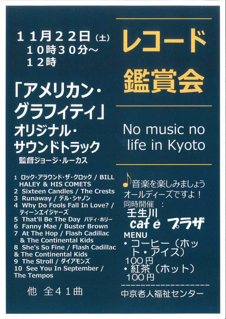 中京老人福祉センターによる「レコード鑑賞会」も同時開催され、レコードから流れる往年のヒット曲と、おいしいコーヒーで楽しいひとときを過ごされたそうです。