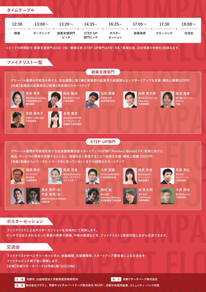 スタートアップ京都市などが、世界で活躍する 社会課題解決型スタートアップ を支援するプロジェクト「IMPACT FLOW KYOTO 2025-2026」のファイナルピッチを開催し、観覧者を募集しています。