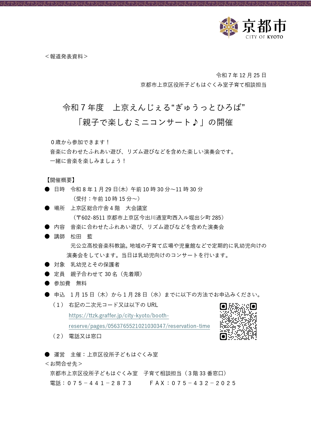 🔸日時:令和8年1月29日(木)10:30~11:30(受付10:15~、上京区 総合庁舎4F大会議室)