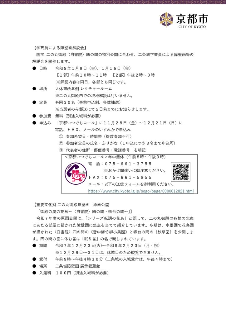 申込:京都いつでもコール(TEL 075-661-3755)11/28~12/21
