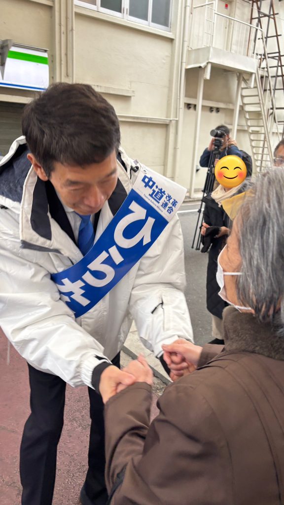 中道改革連合 京都1区 ひらたけ耕三 候補のスポット演説が、中京区で開催 本日1日、中道改革連合 京都1区 ひらたけ耕三 候補のスポット演説が、中京区の西友三条店前で開催されました!ご参加の皆様、「初めて会えた!」、「生の声聴けた!」、「大きな体をかがめて、握手する姿が可愛い!」など、寒い中でしたが、直に会っていただいて、良かったです!「将来、生活、仕事への安心を感じられる社会を作りたい」と熱弁し、最後は政治とカネの問題の決着へ、強い決意を訴えた「ひらたけ」候補を、公明党は、青野ひとしは、最後の最後まで、大応援します!