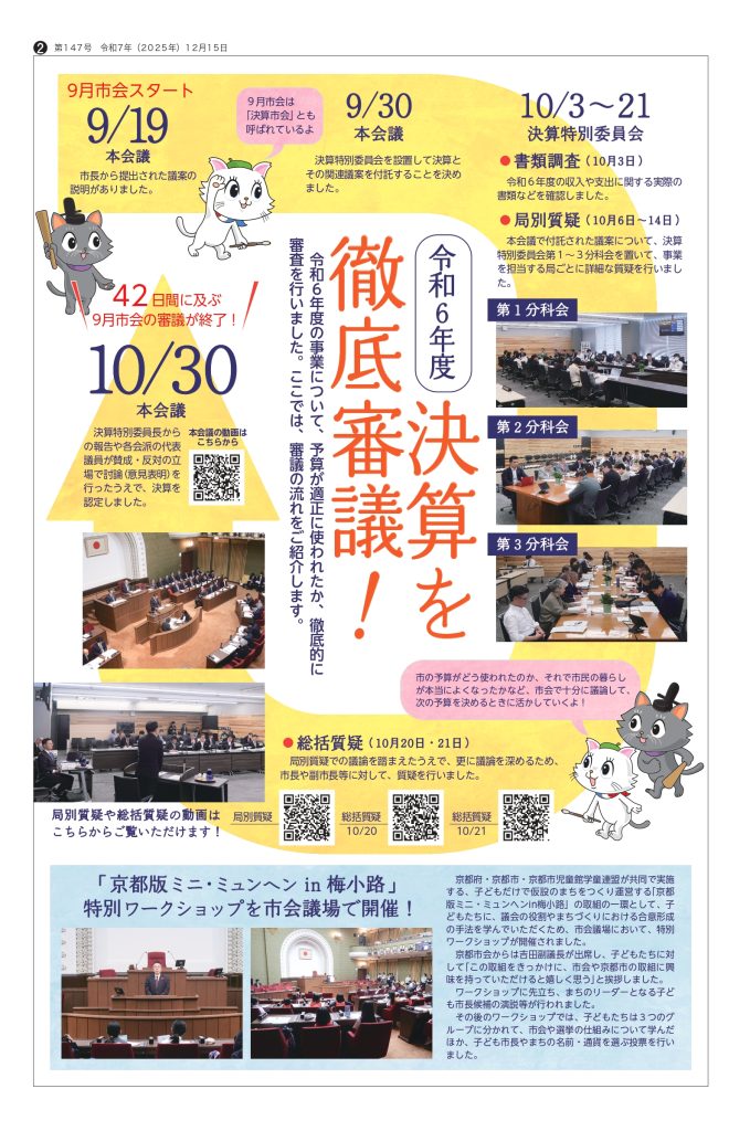 京都市会だより 第147号(12/15発行)は、9月市会後半の報告です。