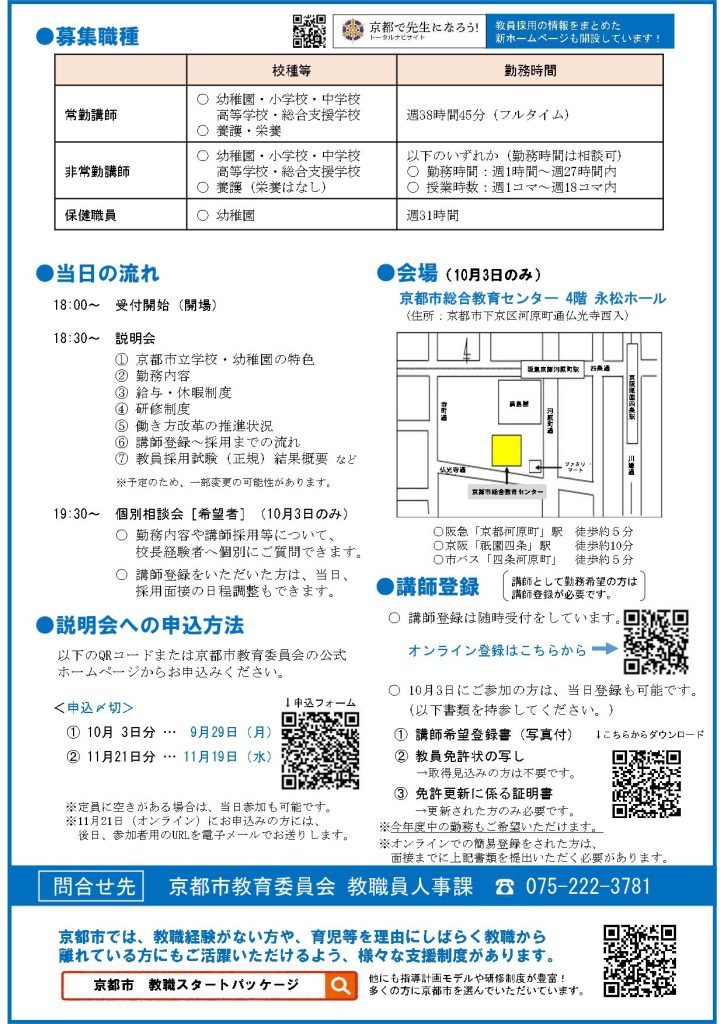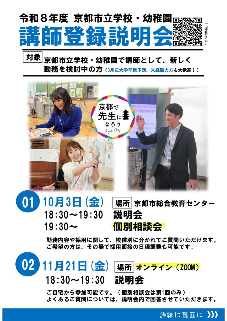 令和8年度向け 京都市立学校・幼稚園 講師登録説明会 です。
