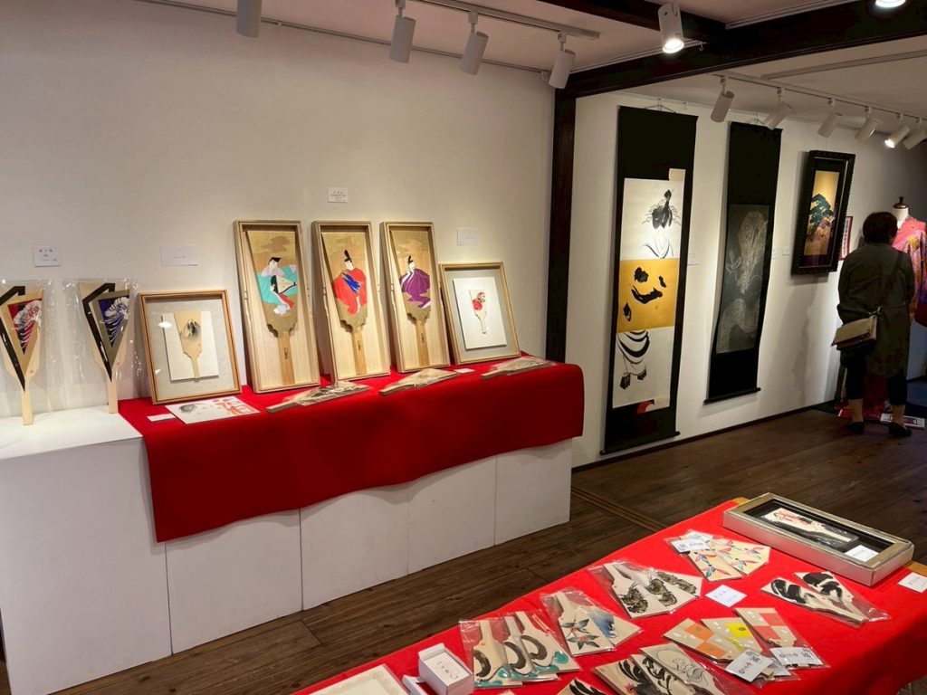 迫力ある龍の掛け軸や、優美な平安貴族の創作羽子板、彩色や模様が素敵なストールまで、魅力ある作品が並んでいて、贅沢な時間を過ごすことができました。