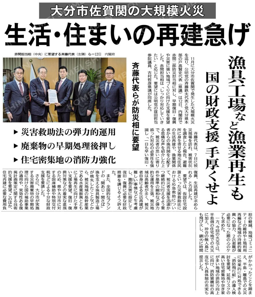 🔸大分市佐賀関の大規模火災で被災された皆さまに、心からお見舞い申し上げます。