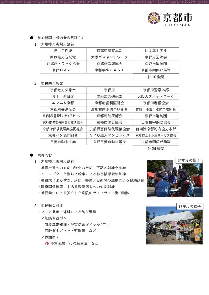会場:岡崎公園プロムナード・冷泉通(訓練)、岡崎公園・ロームスクエア(啓発)