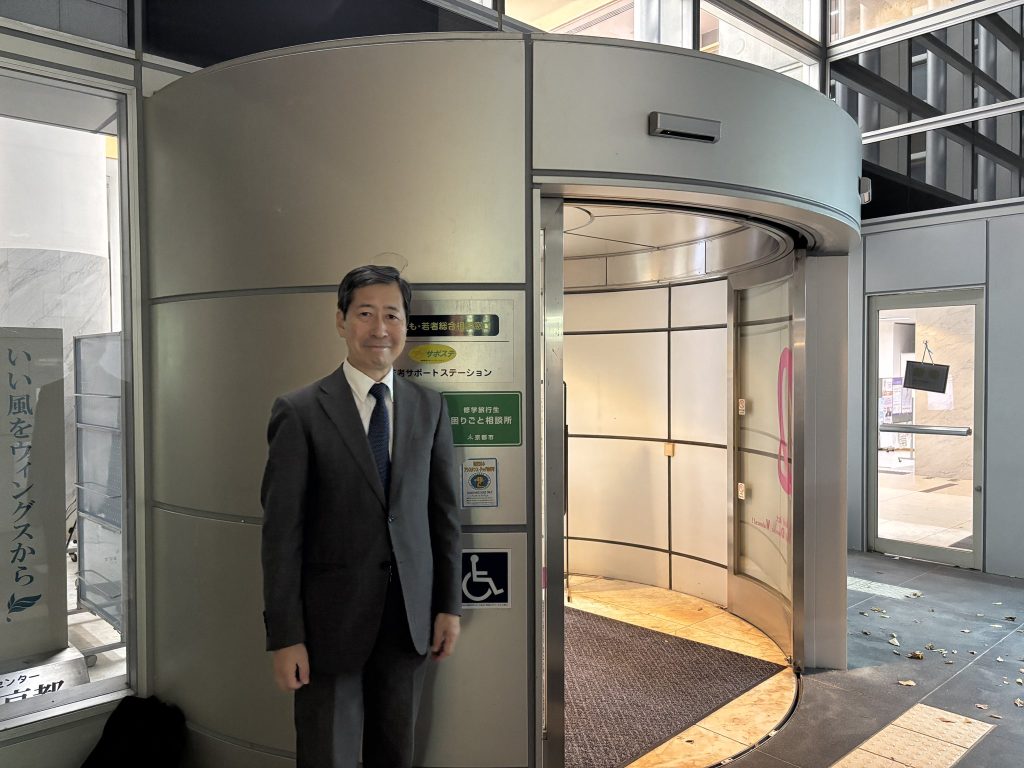 11/27の市政報告会の会場下見を行いました。会場のウイングス京都(京都市男女共同参画センター)は、歴史的な建築を活かした多様な公共機能と、アクセス至便な立地が特長で、平日の夜でも高校生をはじめ若者で賑わっていました。