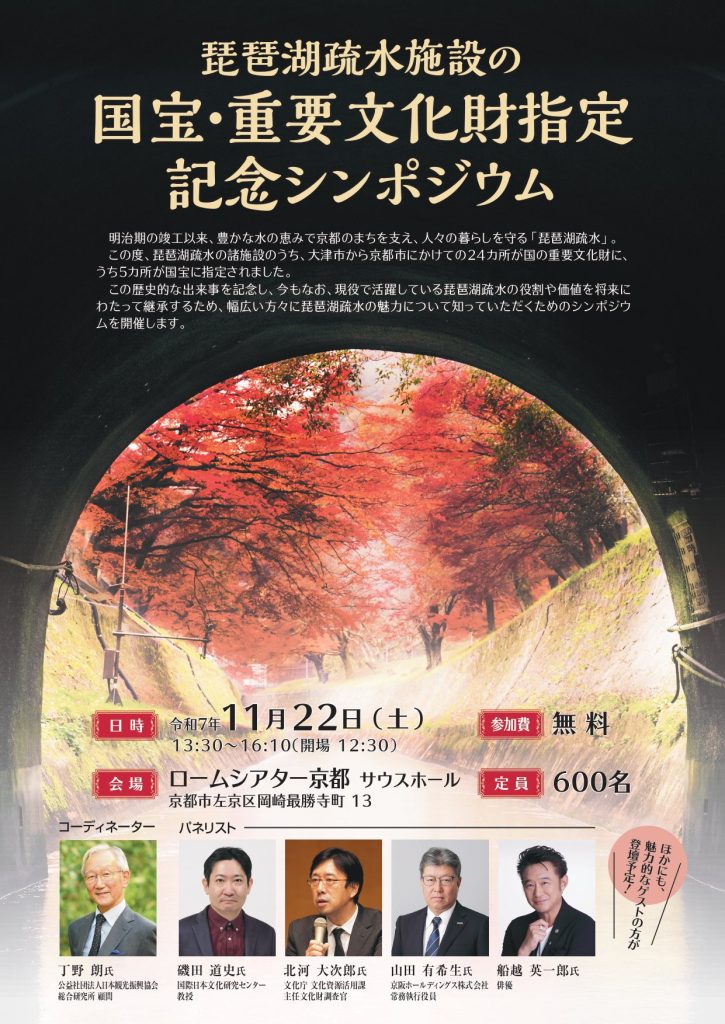 🔸視聴方法:京都市上下水道局公式YouTube「琵琶湖疏水施設の国宝・重要文化財指定記念シンポジウム」から視聴可能。