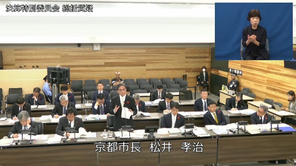 京都市会では10月6日から14日まで、全議員が3つの分科会に分かれて局別審査を実施、10月20日、21日には全議員出席のもと局別審査を踏まえて総括的に市長等に直接質問する総括質疑を開催しました。