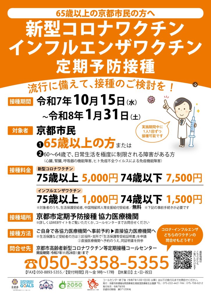 問合せ:コールセンター 050-3358-5355 詳しくはチラシ、または市HP▼をご覧ください。 https://city.kyoto.lg.jp/hokenfukushi/page/0000331289.html