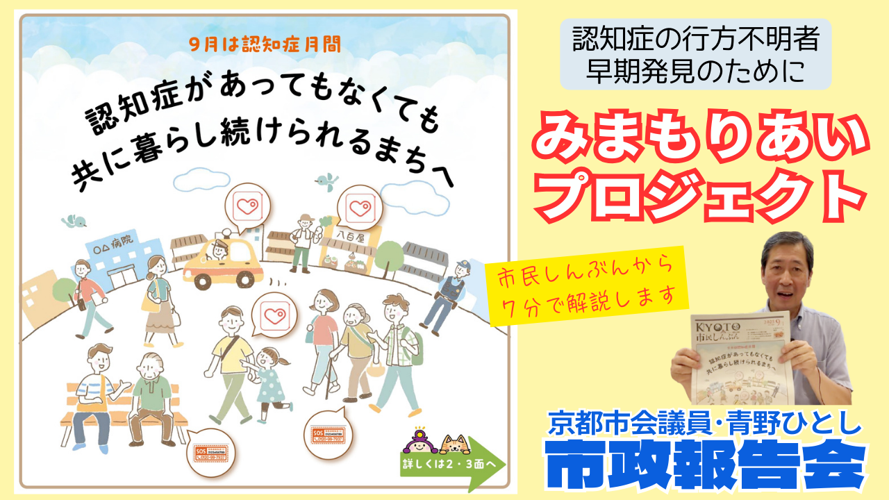 市民しんぶん9月1日号が発刊されました。9月は認知症月間❗京都市では『みまもりあいプロジェクト』が始まりました🌈▼デジタルブック版はこちら ▼市民しんぶんアンケート ▼つかさがお届け!10秒トピックはこちら 私・青野ひと… 続きを読む 市民しんぶん9月1日号発刊!