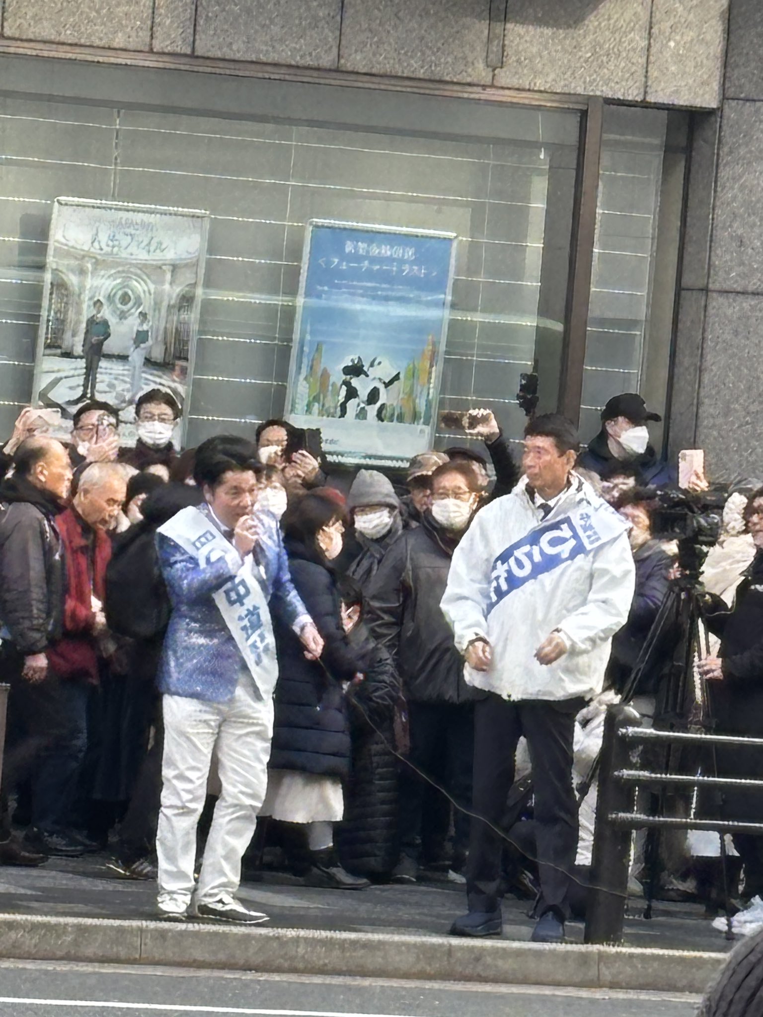 本日14:00 ひらたけ耕三 候補、いさ進一候補と、四条烏丸交差点で、寒さを吹き飛ばす、熱気あふれる演説会でした!