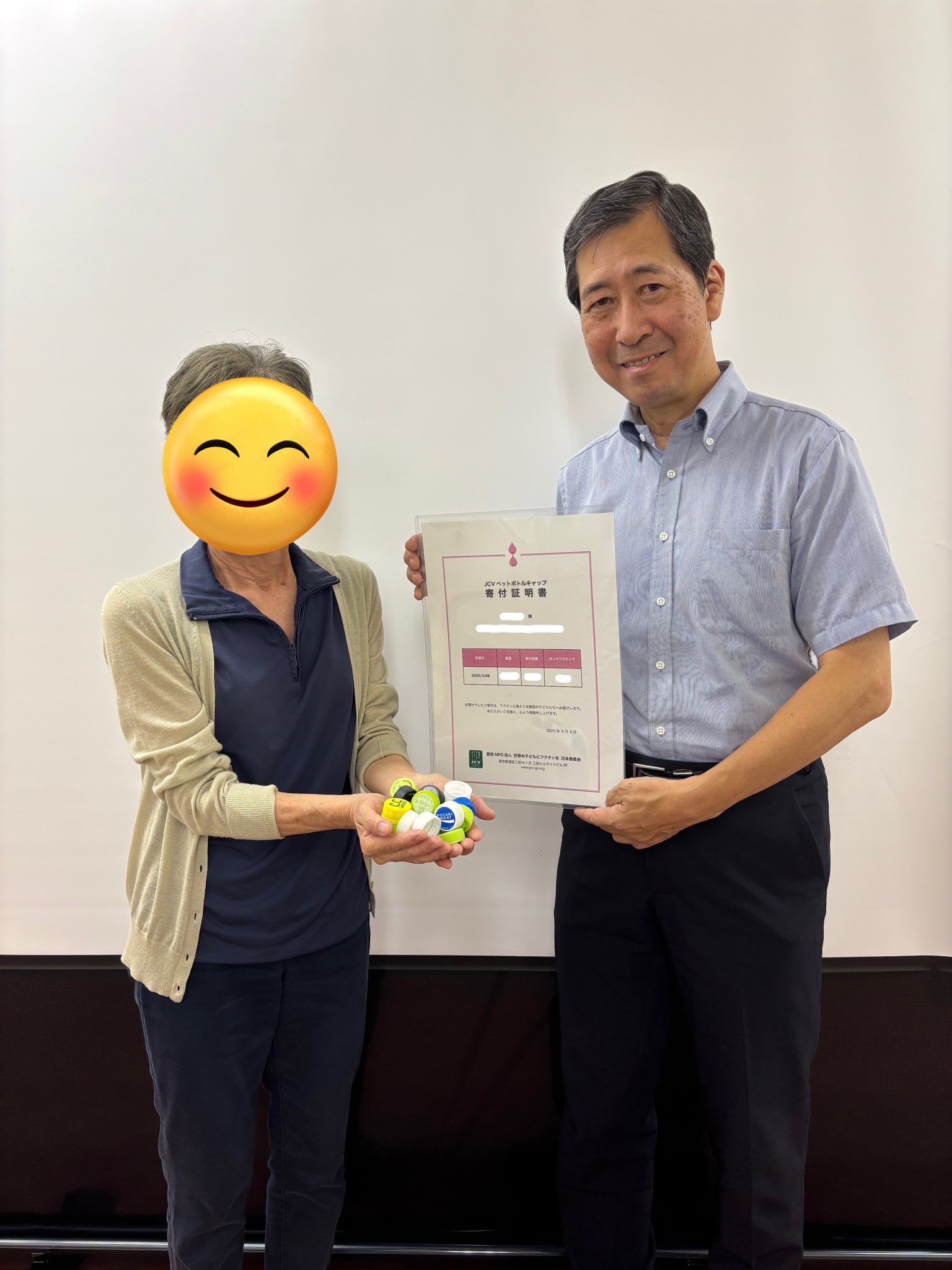 「JCV ペットボトル寄付証明書」をご報告いただきました。